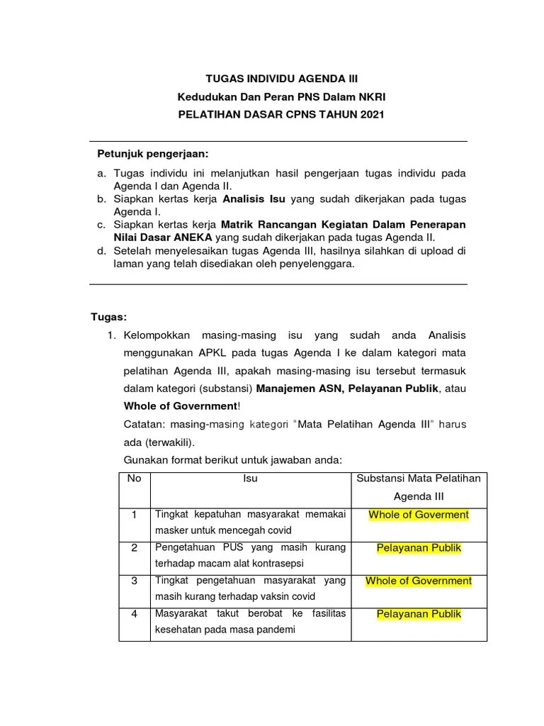 Untuk tugas agenda 3 bisa kalian lihat dibawah. Peliknya masalah pelayanan publik, sejatinya berkaitan erat dengan. Hasil dari pengamatan selama latsar cpns 2021 di lembaga pemasyarakatan kelas iib bondowoso akan digunakan sebagai data primer untuk analisa menentukan isu yang . Berikut tugas pns dan pppk sebagai pegawai asn: Dalam uu nomor 37 tahun 2008 disebutkan bahwa .