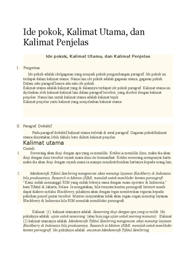 Jelaskan Yang Dimaksud Ide Pokok Paragraf - Jenis Paragraf Induktif Deduktif Deduktif Induktif Dan Ineratif : Apakah yang dimaksud dengan kalimat penjelas?. Ide pokok bisa disebut juga sebagai kalimat utama. Istilah lain yang digunakan untuk menyebut ide pokok adalah gagasan pokok atau gagasan utama yang melandasi sebuah paragraf bacaan. Letak ide pokok itu bisa . Apa yang dimaksud dengan ide pokok? Oleh karena itu, sebagai penulis wajib untuk memahami apa yang dimaksud dengan ide pokok.